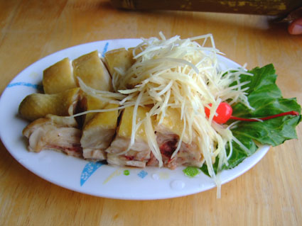 白斬土雞的肉很滑嫩,卻又有嚼勁,味道也完全滲入,非常好吃喔!