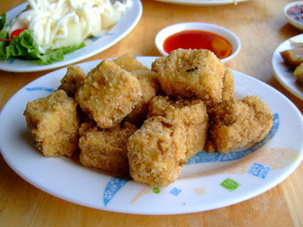 炸豆腐外酥內軟,只是沒什麼味道,要沾將才行.