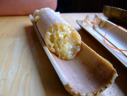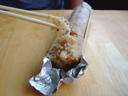 添加了南瓜的竹筒飯,多了一絲甜味,更合我的胃口咧!!