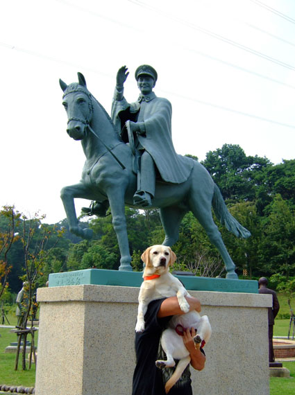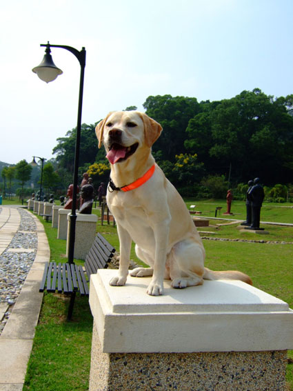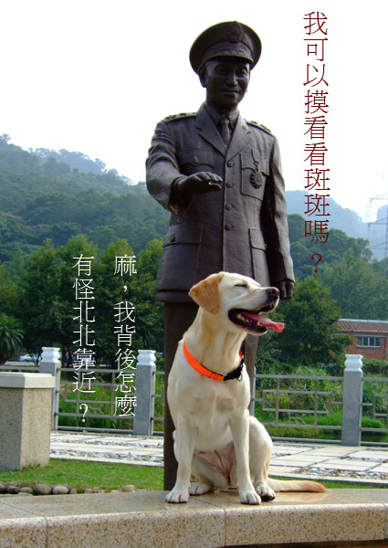 這座銅像的表情很好笑,配合上斑斑的天真笑容,感覺很像在說:ㄜ~~不要靠近我~~我怕狗ㄝ~~~