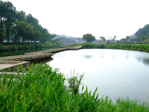 從橋上往右望,是在遼闊水池上的親水遊憩區.