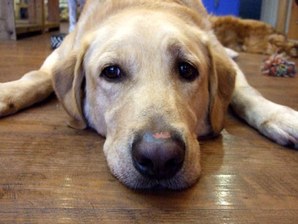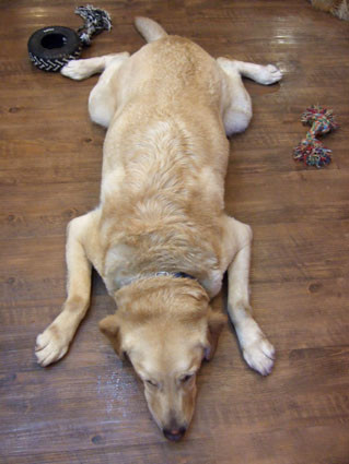 叮叮就完全不一樣了, 總是懶散地大字趴在地上~