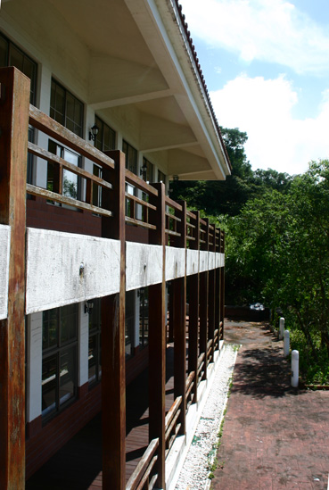 慢慢地,我們來到主建築物的正後方了.腳下的空地,正是我們停車的所在.