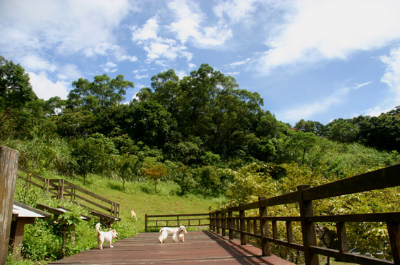 因為帶著三狗岀遊,所以我們並沒有在示範場內待太久,而是直接前往在停車場旁環山步道的入口.