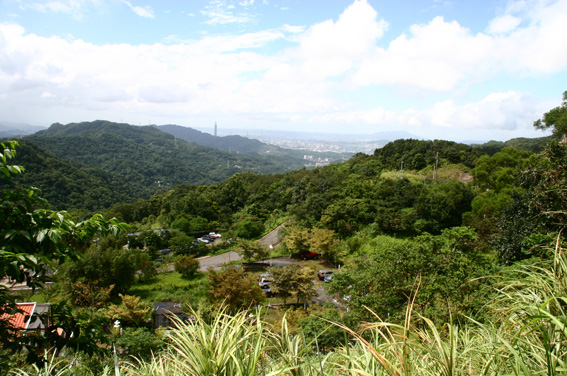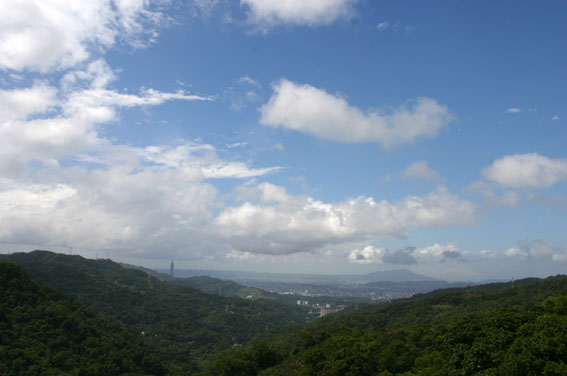 很快的,我們到達步道最高點的涼亭.從這兒往市區望,可以見到101大樓咧~~最棒的是,還有風涼涼的吹,簡直比在冷氣房裡還舒服~~