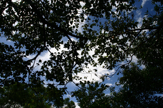 抬起頭,從頂上濃密的葉叢間,可見到晴朗的天空~~