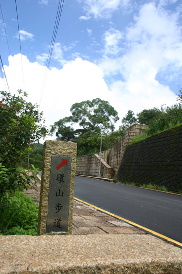 最後,環山步道從示範場左側的大路邊冒出來.