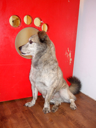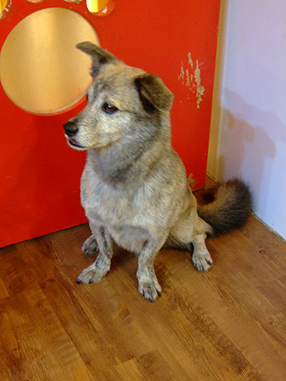 他會慢慢地接近坐在櫃檯裡的我,會把頭靠在我們手上,會站起來跟店長玩咬咬,也會來討食物.