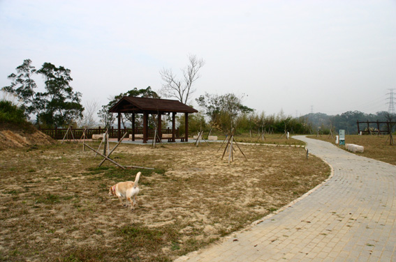 回到管理中心前停妥車,我們牽著兩隻大狗來踩水庫囉!!
