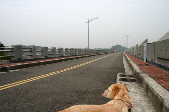 天氣涼涼的,沒有下雨,太陽也幾乎看不到,這樣在壩頂上安靜的走走,帶著兩隻大狗,算是很特別的經驗~~