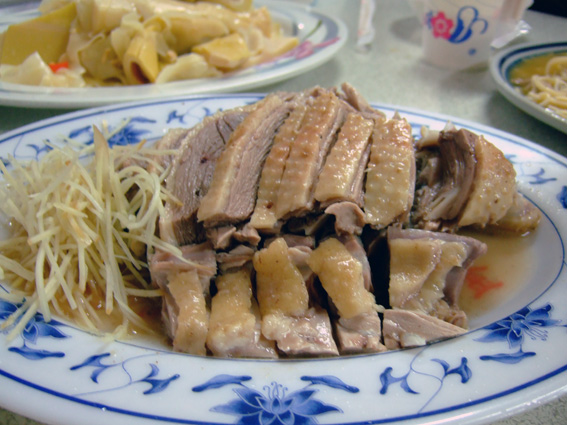 在金山老街上的漳聖王廟前,總是會看到一群群人潮端著盤子的特殊景象,這就是因為饕客想先嚐鴨肉而致.金山鴨肉店的鴨肉之所以好吃,據說是因為這兒的鴨肉現宰現賣,加上特地挑選的番鴨腥味輕且肥油少,以及特殊的調製秘訣,所以讓鴨肉擁有特別鮮美的原味.