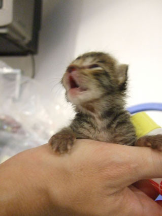 店長說,是她在住家附近撿到的,而且都才剛開眼呢!