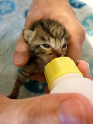 小小貓只有在喝奶時才乖乖的,不然就是在睡覺或是一直到處爬~
