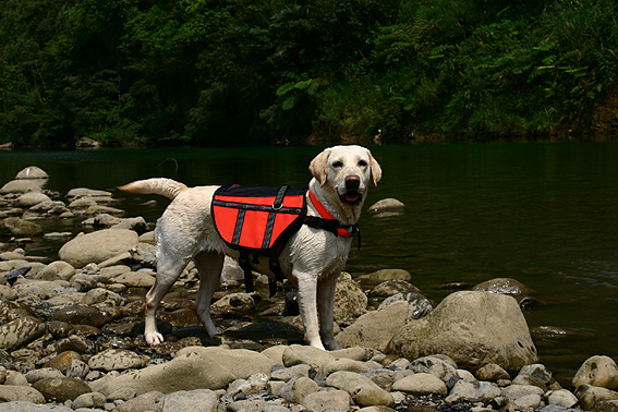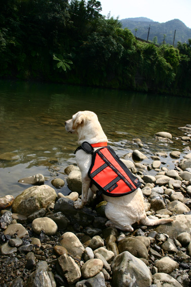於是,我們在幾進考量後,決定為娜娜添購穿上救生衣.