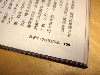 報導的頁面是在104頁, 雖然只有一頁,但能幫忙推廣寵物按摩,那也就足夠囉~~呵呵!