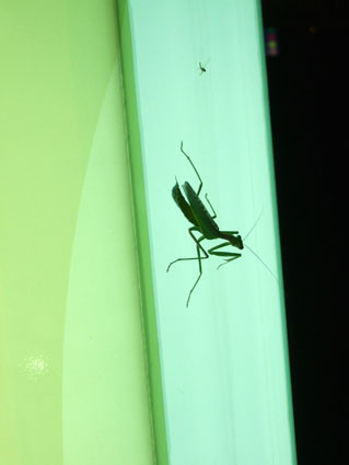 透過招牌的光線,螳螂的剪影煞是迷人!!