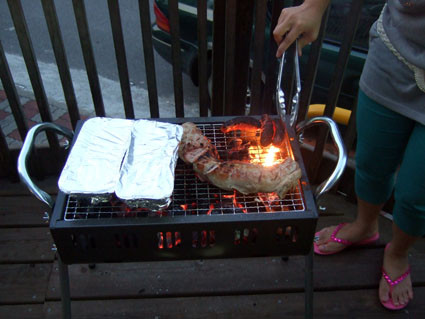 起火成功,就來烤肉肉囉!