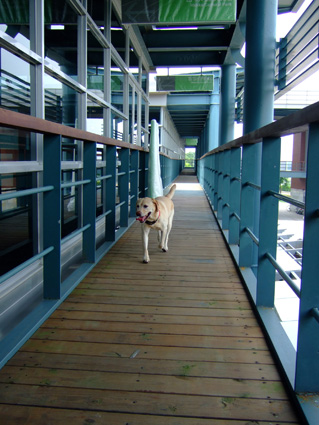 雖然可以讓大狗們跑跑,只是因為實在太熱,我決定往回走到有遮蔭的建築下.