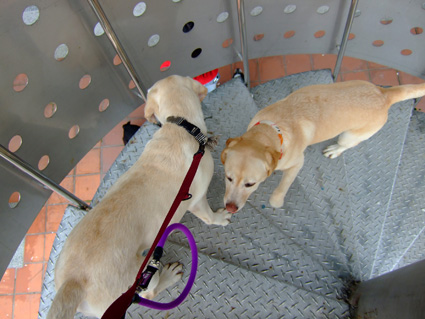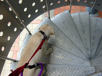 牽著大狗下螺旋梯加拍照,果然是不太容易的事情.