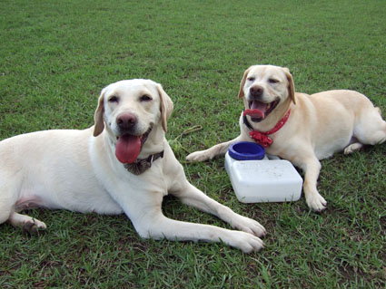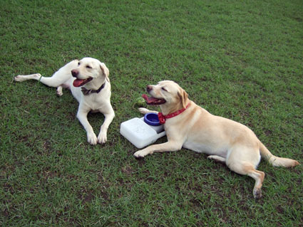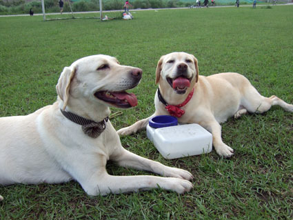 好不容易找到了一塊比較沒人的草地,將大狗放開跑跑,丟球追追.