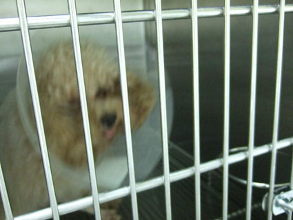 手術後的茶茶,已經在籠子內恢復意識.