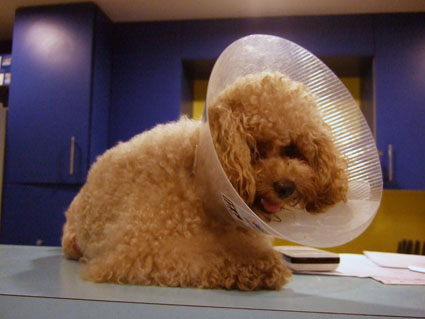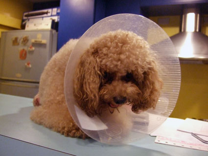 在手術後,因為茶茶見到我們太興奮,所以被醫生下達了禁見令.