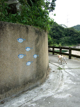 因為當聽到前方遠處的遊客們驚叫著,狗狗游泳ㄝ~~~
