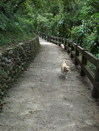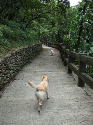 但不知這水潭是有了什麼魔力,居然讓上岸擦乾的大狗,再度離棄我們下水去,讓一旁的遊客們看得哈哈大笑!!