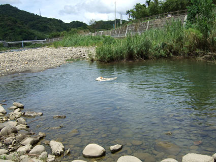 炎炎夏日,不打算跑什麼景點,就是單純地帶著大狗們到坪林老地方泡泡水.