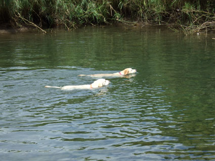 大狗們游起來,也有些意興闌珊的,總是表現出懶懶的緩慢的游姿.