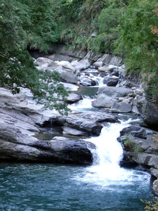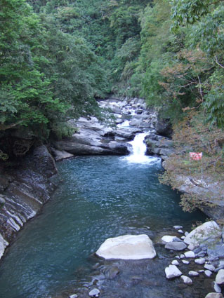 在沿著路過了一個小橋後,看到的是這個,一處美麗的瀑布深潭~