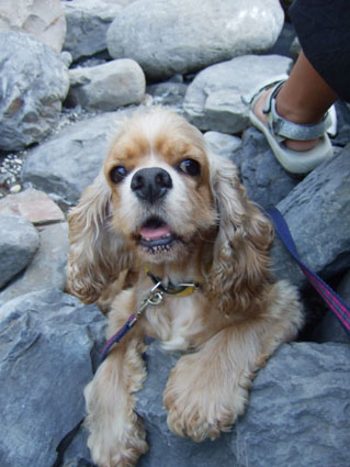 再度到水邊的亮亮,則是緊緊地粘在我腳邊,
