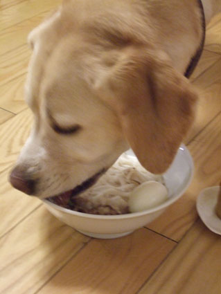 而且在壽麵上,我一樣替她加了一顆蛋,