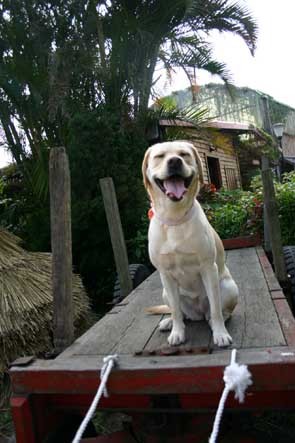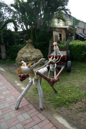 回到農場前方,我們到一處有水龍頭的地方來沖沖泥巴狗。