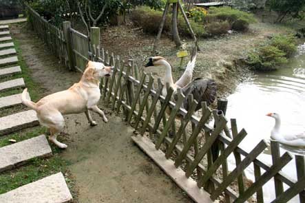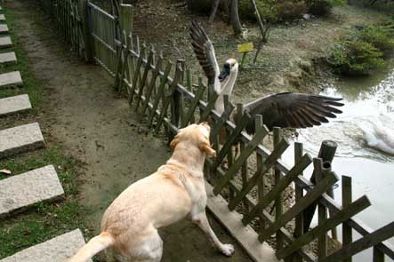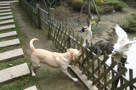 於是,惡劣的斑斑決定去跟鵝玩玩~~~