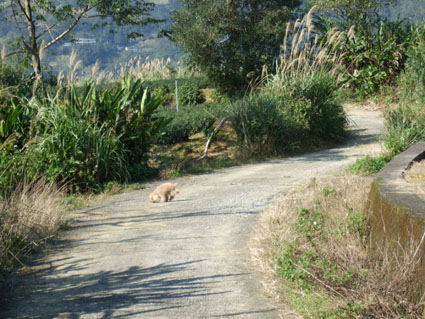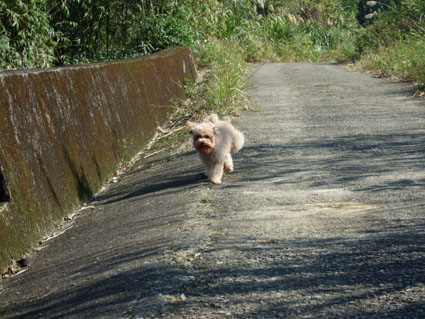第一次牽繩跟著走,(因為茶茶以前都住籠子,所以不會習慣牽繩,更不知道怎樣被牽著走~)