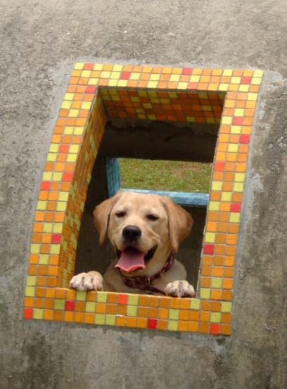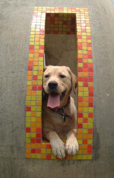 首先來到在金山中正公園前的一處兒童遊樂場,我發現有一處水泥管正好讓斑斑來拍照ㄝ.