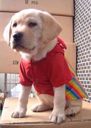 奇怪,才2個月的狗狗,怎麼衣服穿起來都已經是繃繃的了....@@